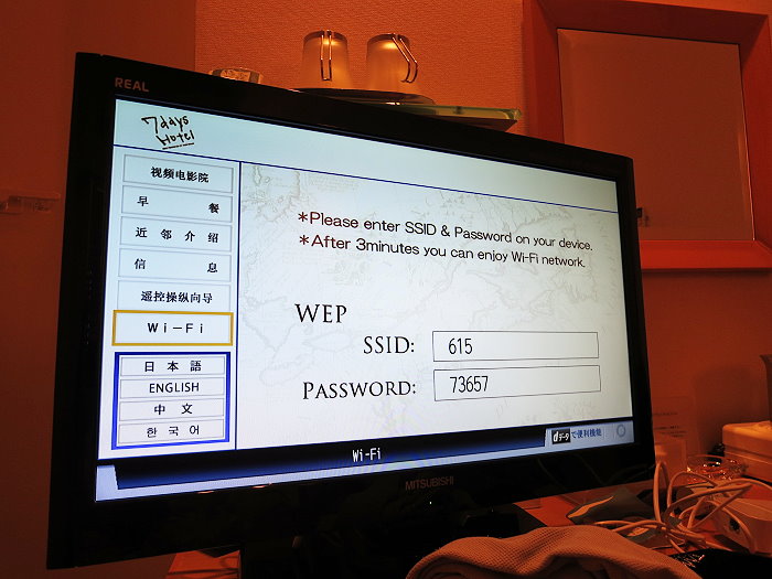 wifi的密碼要到電視上查看。