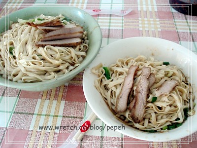 點了一碗餛飩湯,woodstock只是為了要湯匙吃麵而已,餛飩吃起來是蠻好吃的,肉饀不肥也不瘦,只不過,皮多了些,好像小孩穿大人衣服般,每一顆餛飩都拖著長長的外套或袖子,饀再多一點、皮再少一點,就更臻於完美囉!(果然是拗客的要求)