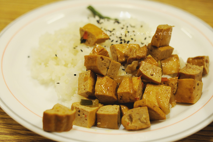 先在外面的廚房點餐並結帳,進去沒多久咖哩飯就上桌,想吃飽一點,豆干可樂白飯大骨湯任客人吃喝到飽,只有咖哩無法加量,但額外的副食都可以吃到飽,對於學生或大胃口的人來說真是個好地方,對喜歡豆干的我們來說,豆丁狀的豆干微辣好下飯,吃咖哩配豆干雖然聽起來很不搭,卻是我最愛的吃法,好一陣子沒吃到老騎士咖哩時竟然還會偷偷想念,個人最愛的是咖哩雞肉飯,雞肉似乎裹粉滷過(?),而不是白雞胸肉,如果覺得咖哩的公定份量實在不夠,也可以跟店家客製化,「100元的咖哩」、「150元的咖哩」,份量的確比價目表上所定的份量還多,配上白飯與豆干,有時還會吃到很撐,可樂紅茶也是喝到飽,咖哩豬肉的肉塊不夠軟嫩,很有嚼感,最常點的還是咖哩雞肉,一直都沒吃過海產咖哩飯,除了價格較高外,總是想再嚐雞肉的滋味,下回應該點個海產咖哩來嚐鮮分享才是~^^
