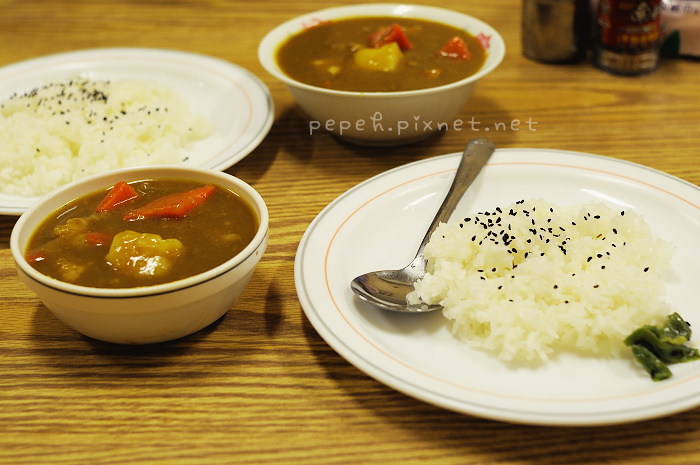 老騎士咖哩,幾年前曾經是我們很喜歡的店家,便宜好吃又大碗是老騎士給我們的印象,後來,咖哩的價格開始調漲,偶而再去吃時友人覺得味道沒以前那麼好了,自己倒是覺得很好吃呀..:P