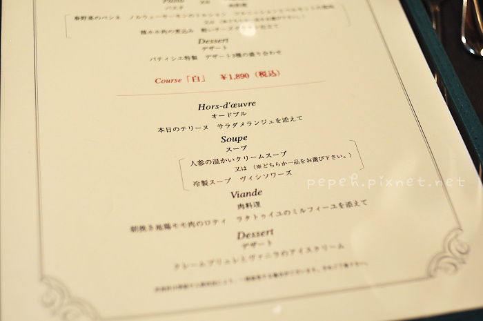 至於蒼的餐點採套餐式,午餐較便宜,2010年去吃時最便宜的套餐”白”是1890円,今天再看一下官方網站的標價,已變成1980円,次貴的套餐”赤”由2940円變成2980円,但比起晚餐的5800円和8800円,中餐實在便宜多了,每道菜看似份量少,但吃到最後一道就有飽足感了,餐點精緻味道佳,服務又周到,對旅人來說儘管費用不算便宜,能欣賞並在町家空間吃飯,又有好服務,實在令人甘心的掏出荷包裡的日幣,滿足的結帳。