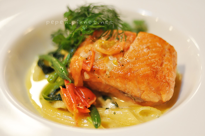 套餐”赤”2940円的主食-鮭魚義大利麵。