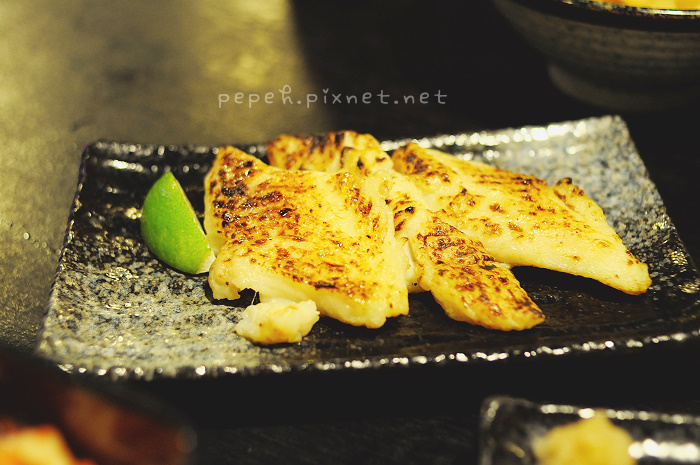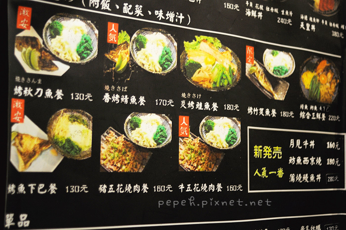 平成十九的點菜方式相當特別,看好菜單後去食券機投幣點餐,若對食券機不熟,操作可能會花點時間,但上菜挺快,沒多久,桌上已擺滿四個人點的主食了,香烤鯖魚、炎烤鮭魚、月見牛丼、蒲燒鰻魚丼,這些是我們四人的主食,另外點了泡菜和烤雞肉串,格外推薦烤雞肉串的嫩與香,沒有用太多調味,簡單的味道、火候控制適中的烤食讓我們吃的津津有味,至於主食,也很得我們的歡心,自己點的香烤鯖魚烤的很入味,十分下飯,每一道餐食都很合我們的味,與好友們聊的開心也是印象佳之處。