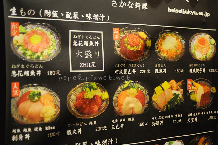 和好友相約吃晚餐,這一餐好友選在中山站1號出口附近、點點咖啡巷子的下一個巷弄中的平成十九,老闆娘是華文說的流利的日本人,臨時的約會訂不到位子,只能現場候位,即使室內坐滿人,外頭也站了好幾組候位的客人,因用餐客人翻桌率高,沒等太久就有四人桌了。