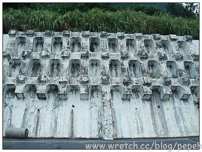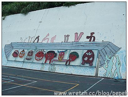 在牆面旁邊,還有這些空心磚的牆面,這約有3公尺高吧!據說真的有小朋友會爬上去,天啊!這真的很不好爬耶..小朋友真厲害!