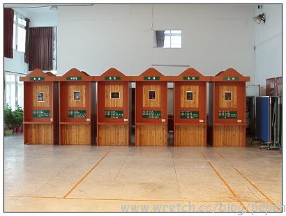 活動中心,這一個個木造物放的是國樂樂器的介紹。
