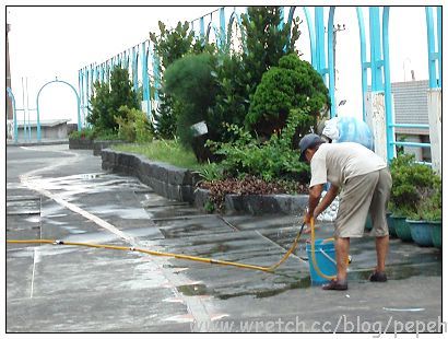 再往前走,看到另一位傳說中的神奇女工友的先生,果真每天下午來幫她善後整理校園,她的神奇事蹟足以令人噴飯,太有趣了...