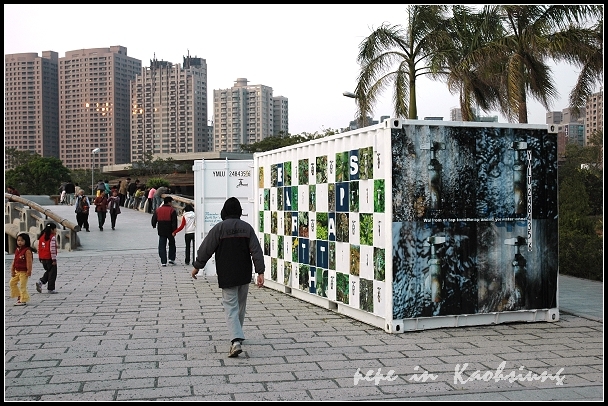 也有貨櫃藝術空間,地上擺著主題互異的貨櫃,有些可以進去觀賞,有些則只能遠觀不能褻玩焉。