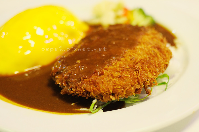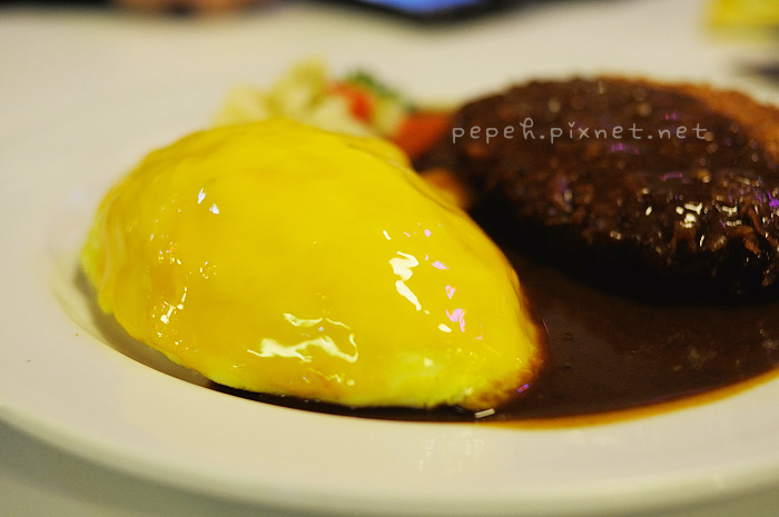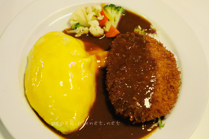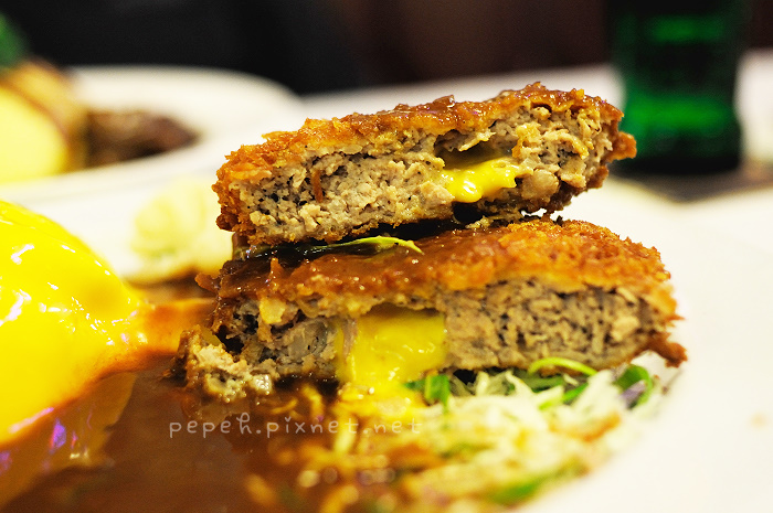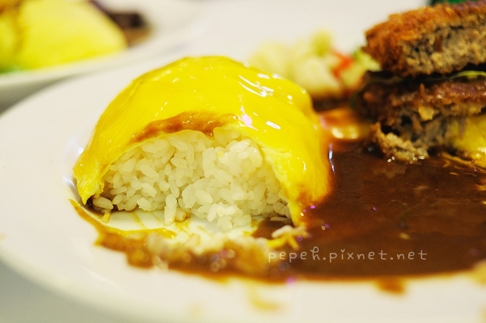 手工炸肉餅特製蛋包飯,200元,醬汁為肉桂咖哩。