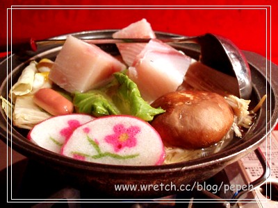 海鮮鍋,看到大塊大塊的魚肉沒,真是豪爽呀!這裡的火鍋料也是我看過最捨得放的店,底下是滿滿的火鍋料+青菜,再度驚嘆豪邁..^^