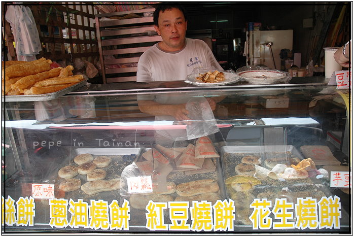 見我們猶豫不決,推薦我們買蔥油燒餅,但比較不喜歡鹹燒餅,最後還是買了甜燒餅、紅豆燒餅和一杯豆漿。