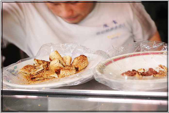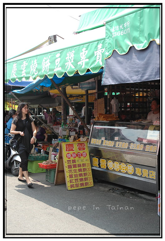 迅速拍完排骨酥先生便馬上往市場內前進,一直往裡面走,看到慶雲燒餅的攤位就是了,有店面但好像沒座位(?),