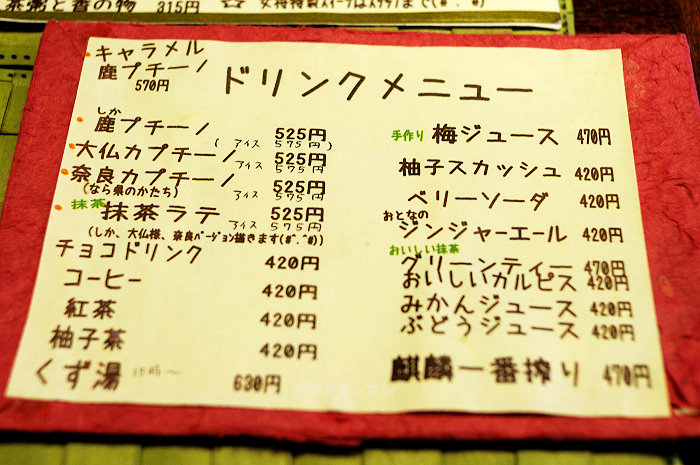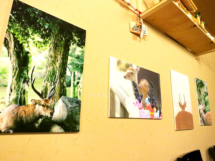 這家店有許多鹿商品,牆面也有不少鹿的攝影照片,有好幾張的角度都讓人讚嘆與懾服,這裡是舊町家空間,座位區需脫鞋,但非榻榻米席,等待飲料的同時,老闆發扇子讓我們搧風,在這裡用餐的氣氛十分愉悅,適合散步途中歇腿的好地方~^^
