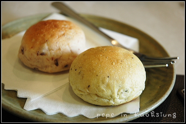 ●加95元做了一個套餐,除了附一個湯品外,還可選沙拉或麵包、飲料和甜點,我們選了香草麵包。