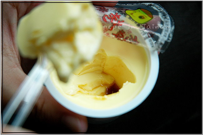 ●撕開包裝紙,用力往下一挖,焦糖就在最底下,布丁的口感較一般市售布丁來得稍硬,和著焦糖一起食用,甜度適中,但口感的滑嫩不如預期的想像,也許是因為在製作過程中只加鮮奶、雞蛋和焦糖,不添加水,相較之下,比較喜歡較Q彈滑嫩的滋味。