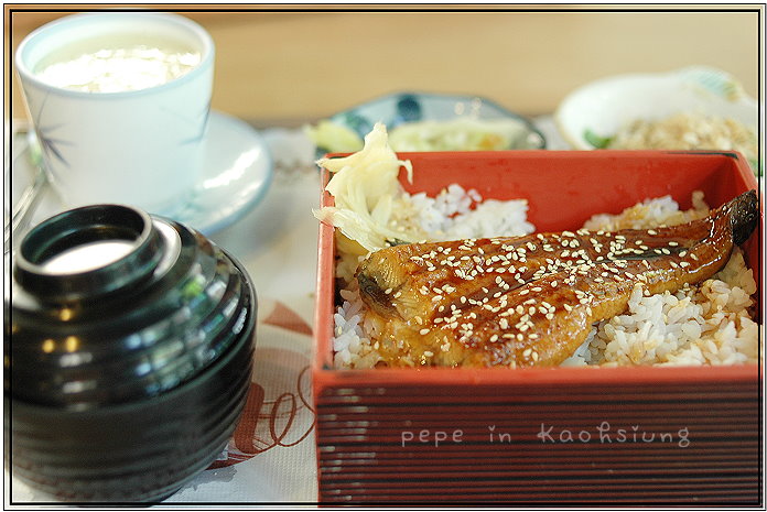 我點的是鰻魚定食,200元。含湯、小菜、茶碗蒸、鰻魚飯、飲料和甜點,鰻魚的味道還不錯,湯品則是讓w喜歡,是味噌豆腐昆布湯,茶碗蒸的份量不小,小菜是高麗菜和柴魚佐蔥段。