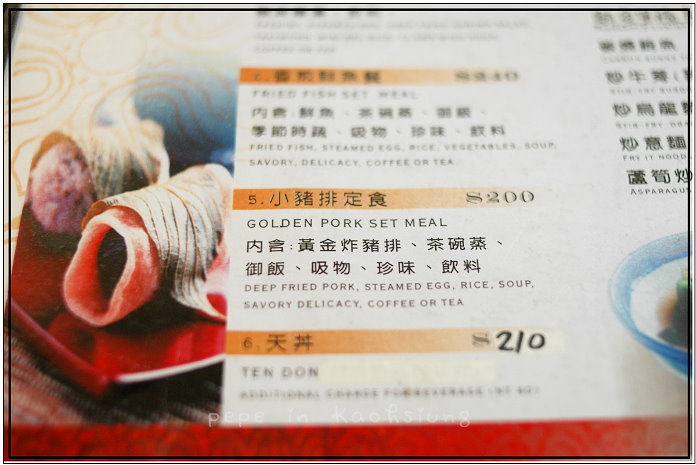w點的是小豬排定食,200元。真的是小豬排,四塊切得較厚的炸豬排,皮不酥,口感沒那麼嫩,和市面上吃到的日式豬排不同,湯、茶碗蒸、高麗菜都是和鰻魚定食一樣的,就不再贅拍,只拍了不一樣的小菜,若是要比較的話,我們喜歡鰻魚定食多一些。