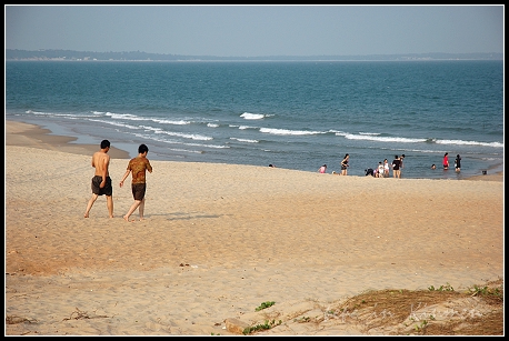 這裡的沙是細細的白沙,跟墾丁的白沙灣蠻像的,才稍稍接近,腳底就進沙了。
