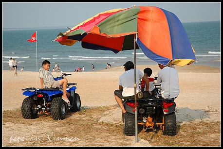 由珠山往金城、機場方向,路上就可以看到這個牌子了,看到牌子往前騎約3、400公尺就可以看到海邊了。