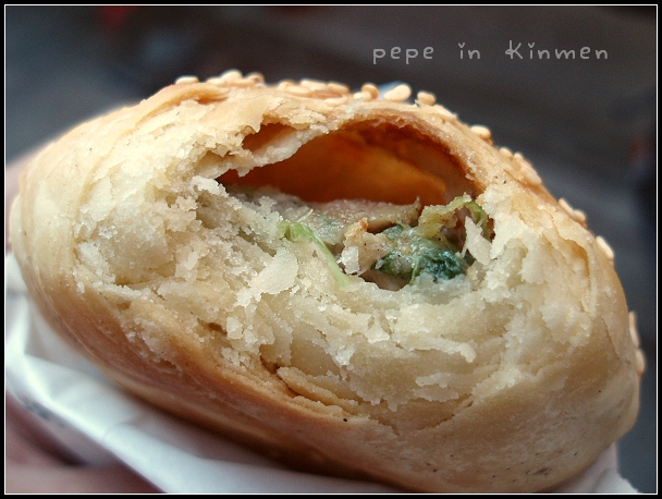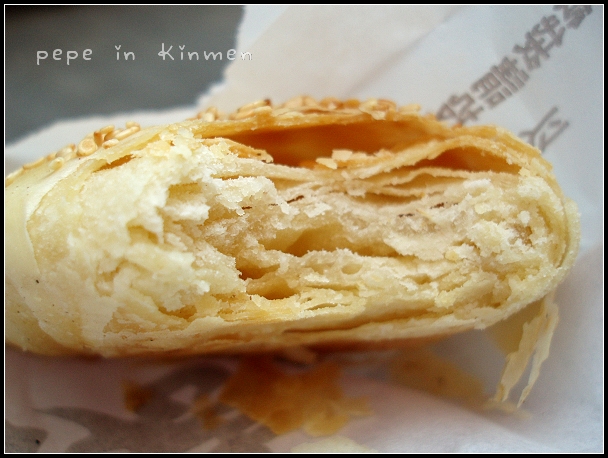 ●咬下一口,酥脆的外皮就掉了一地,麥芽甜饀的甜味適中,是金門在地的好美味。