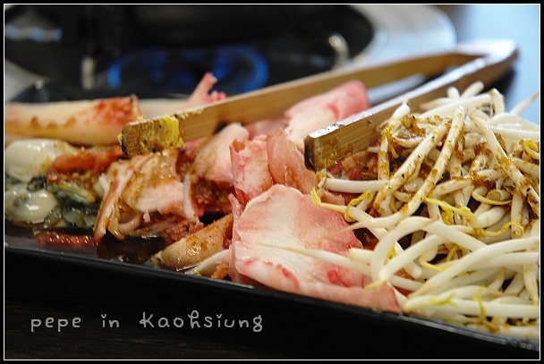 ●海陸燒肉盤有豆芽菜、豬肉、蚵仔、鯛魚、蝦子和貝類,不管是那種食材,烤起來都十分香嫩有味,我好愛這裡的燒肉。