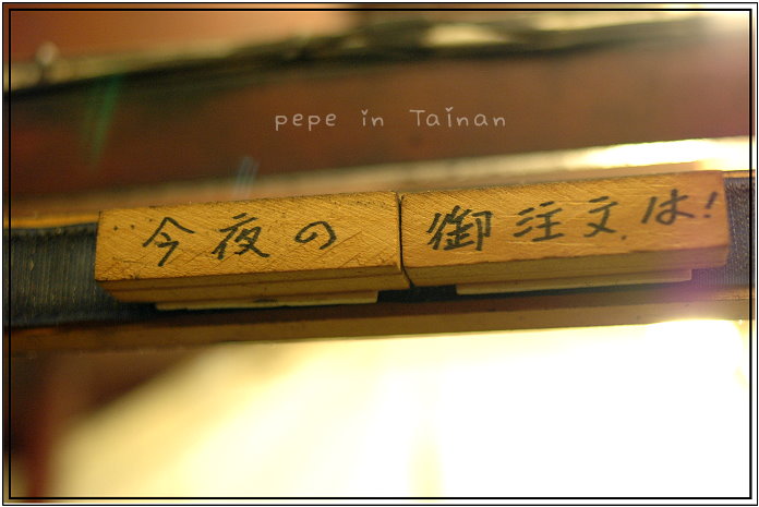 來這裡,請一定要先打電話預約,每天早上老闆都會親自挑選食材,品質好的才會入荷,沒有提早預約,有些食材就無法嚐到,就只能選既定的套餐選擇,電話預約的好處還有一個,就是之前文章中w提及的”預約單”,老闆會貼在攤子外頭,把預約客的姓氏、時間、人數寫於紙上,這次w請老闆寫上我的姓,初見日文的預約單,真的會有滿滿的虛榮感..XD