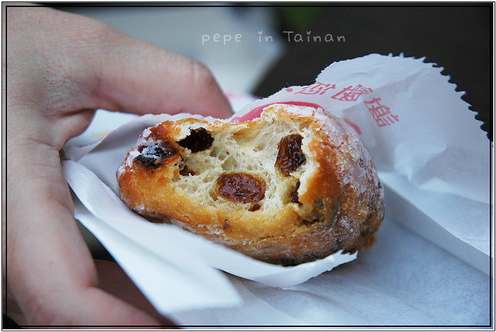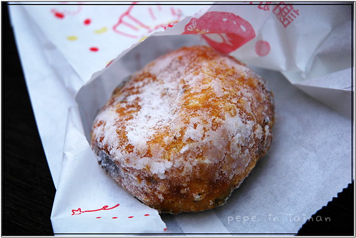 ●另外,我們還買了荷蘭的甜圈球,一個20元。有點像是法國麵包綴以葡萄乾,再灑上糖粉的味道,