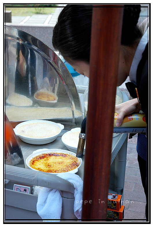 ●法式烤布蕾,就是焦糖布丁,現點現做,一個6吋的焦糖布丁150元,附外帶瓷盤,