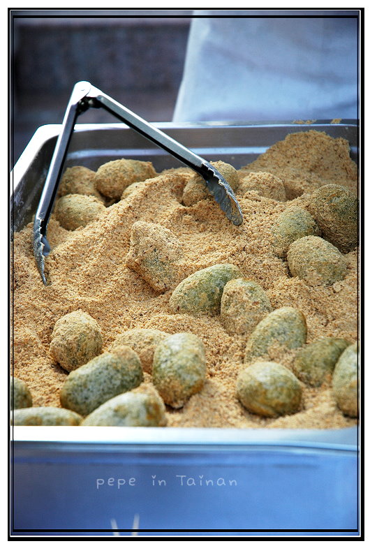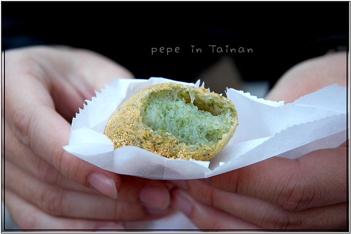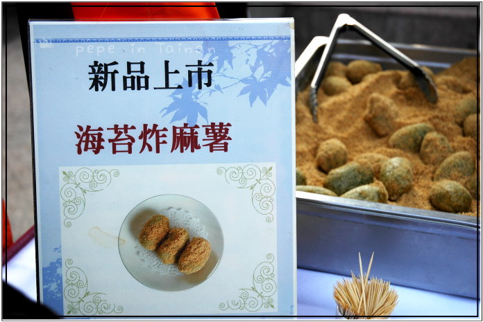 ●海苔炸麻糬,3顆50元,這也是我們喜歡的點心,現炸的麻糬,加入海苔做成外皮,