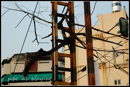 攤子旁的柱子,有著樹枝纏繞,woodstock拍下這一張,個人覺得很讚呢!