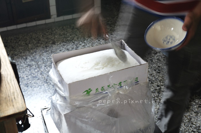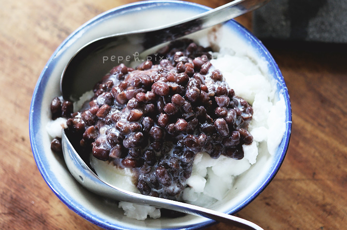 手工刨取香綿冰,加上紅豆與煉乳,份量十足的紅豆冰上桌!