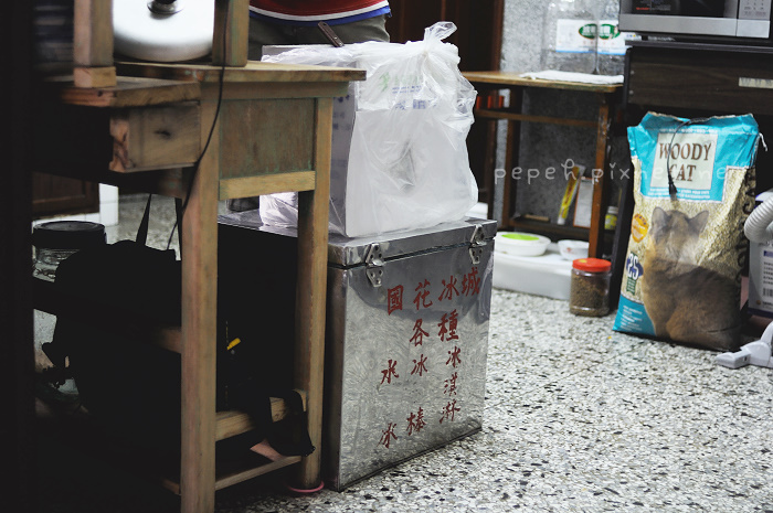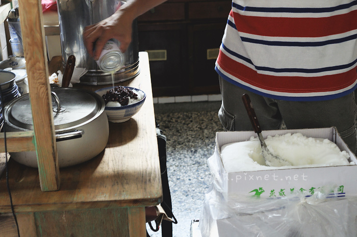 慕ㄇㄨˋ紅豆,除了是思慕情人之意外,”慕”特別加上注音,隱含其他含意,包括英文的move和木頭等意思,等待行動攤車做好後,以後在神農街上可以看到大可擺攤賣紅豆湯,這是英文的move 移動之意,柴燒紅豆湯又是另一項特色,柴燒窯在三樓,原本喝紅豆湯的地點預計在三樓,但擔心外來客會影響房客的作息,柴燒窯依舊放在三樓,喝紅豆湯的位子改在一樓,有冰的紅豆冰與熱的紅豆湯,另外還有桂圓與紅豆一起熬煮的紅豆水,在冰的與熱的抉擇中,最後決定吃紅豆冰,只見大可搬出一大箱香綿冰,手動盛出一碗清香的香綿冰,加上柴燒紅豆與煉乳,在夏天來上一碗柴燒紅豆冰真是過癮極了。