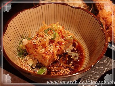 這是豆腐,蔥花配上芝麻、柴魚等料,清爽可口。