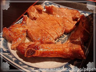 他的排骨是滷的,油油亮亮的外表,剛出爐的熱度十分可口。