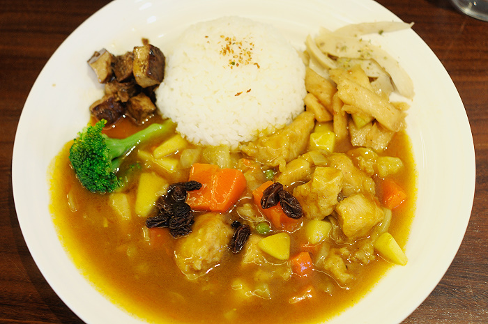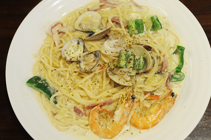 也許因為肚子太餓,在遇見咖啡點了咖哩雞肉飯與奶油海鮮義大利麵竟覺得美味的很,咖哩雞肉飯的配菜還有自己喜歡的豆干,咖哩帶甜但不辣,雞肉也很入味,沒幾口就把咖哩飯吃光光了,奶油海鮮義大利麵的奶油醬汁濃淡很合自己的味,格外喜歡麵條口感與醬汁滋味,現在想起來仍回味不已,點餐加點飲料有半價優惠,當然要各點一杯來喝,飲料點了法式巧克力拿鐵和手沖咖啡,法式巧克力拿鐵加入奶油,雖然覺得有點罪惡感,但微甜濃郁的滋味還真是好喝,手沖咖啡點了安堤瓜火山咖啡,可惜快沖好時又忙著去擺餐點,咖啡沒那麼順口,有點兒可惜,但在這裡吃到美味的餐食,仍帶著滿足感離開彰化~^^