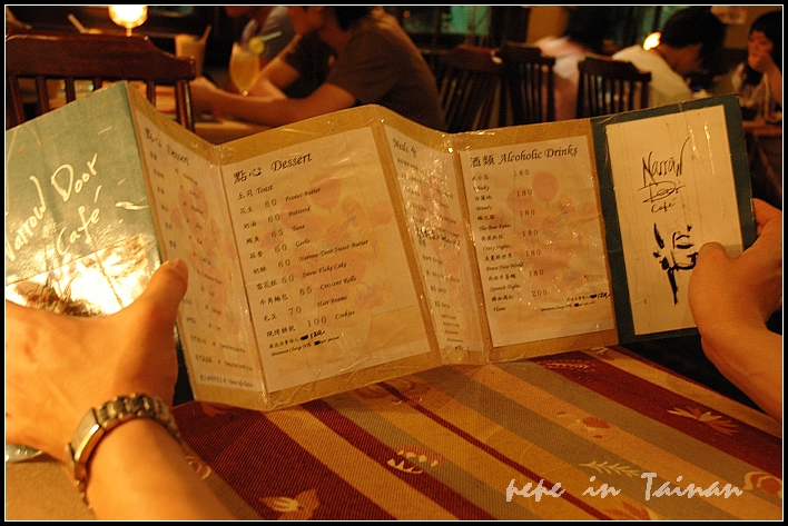 我們傍晚才抵達窄門,天色已晚,翻開幾摺式的menu,決定各點一杯咖啡就好。