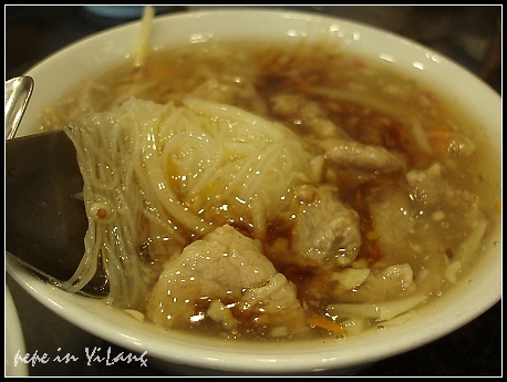 這裡的肉羮羹之所以特別,是因為以蒜末作湯底調味,並加入紅蘿蔔絲和筍絲,豬肉片厚實,料還滿多的,只是…蒜味肉羹還是吃不太習慣,對於不太嗜辣的我們而言,真的有些辣…