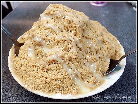 在幾年前,我們來到冰雪,吃到第一碗雪花冰後,那綿密又實在的口感,讓我們愛上它。那一天,下午加晚上,共瞌掉三碗冰,現在想一想,還真是有點誇張。