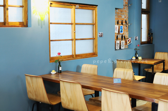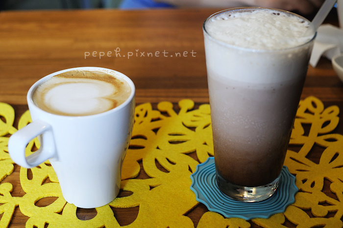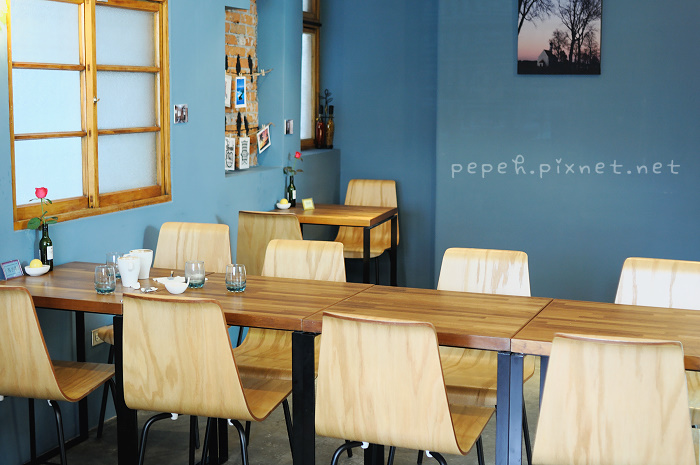 PIANO, PIANO 咖啡的外觀真的很漂亮,鐵花窗的樣式在同一幢建築裡也有不同的變化,紅磚圍牆打出造型,讓一樓美麗的鐵花窗也映入眼簾,木作的招牌與大門,視覺上增添不少溫暖的感覺,走進PIANO,PIANO,櫃台前的空間其實不大,愈往裡面走,視野愈開闊,左側的空間中放了幾張大桌、二人桌與靠窗吧台,老窗搭配一些趣味裝飾,牆面塗上藍色漆,與木作桌椅的溫暖色成了適宜的對比,眼尖的人,可以發現咖啡館的許多角落放上整修前或整修中的照片,與現在的模樣相對照,可以想像當時的屋況與室內結構,目前一樓是咖啡館,二樓是選賦設計公司 CHEZ VOUS。