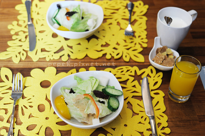 菜單上寫著8:30-11:30供應的早午餐,但咖啡館已延長時間至12:30,讓原本打著如意算盤的我撲了空,原本打算點一份早餐和點心,沒想到輕食點心變成12:30後才供應,只好點了二份早餐,不到12點半,發現有一桌客人吃到了鬆餅,大概是老闆娘朋友的關係吧XD,一份180元的早餐,飲料、沙拉、蛋與麵包香腸培根的組合,那天中午吃完真的很飽,差點吃不下飯,在咖啡館吃早餐,既享受到早餐的美味,也用眼睛看了老屋新設計,與期待相距不遠,沒有刻意的造舊,有PIANO,PIANO的獨特設計感,也和台北的二條通綠島小夜曲相似,一樓是咖啡館,二樓是設計工作室,PIANO, PIANO的二樓設計工作室為私人空間,目前沒有開放。