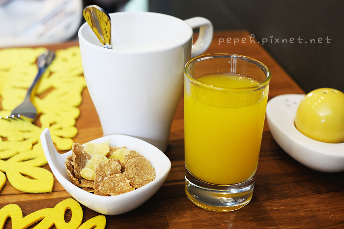 餐前飲料-季節果汁或牛奶(附麥片)。