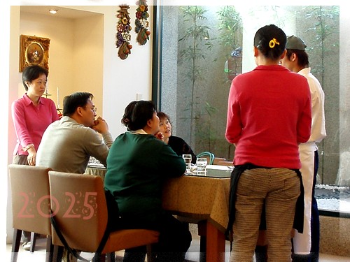 後來餐廳老闆娘看我們一直在拍菜單,可能以為我們是間諜,客氣的問我們怎麼一直拍,只好跟他們說是要來做網頁,當然得附上一句好話:我們要幫你們推薦的啦!聽到這句話,老闆娘謹記在心,後來我們問菜單食物內容時,她竟然說要請主廚下來跟我們介紹,oh~my god,我們是隨便說說,老闆娘還認真看待,後來年輕帥氣的主廚真的下來了,我們倆只好支支吾吾的隨便問了幾項,就說要點餐了。(其實早就決定要選什麼了,只是為了應付主廚…
