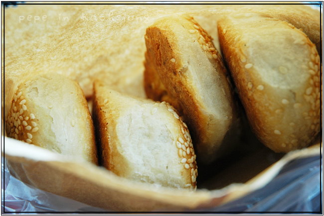 ●買了四個甜的,老實說,我們都覺得甜的比鹹的好吃,甜味燒餅的口感吃起來札實,微微甜味的襯托,是甜味燒餅讓我們讚不紀絕口的滋味,剛出爐的味道是最好吃的,老闆也都建議客人一定要馬上吃,不要等待放涼了才吃,那味道就沒剛出爐時的令人驚豔。