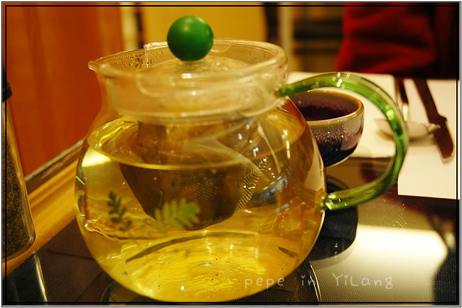 ●坐好後,為我們送上一壼熱呼呼的菊花茶,在那個微微飄雨的夜晚,一杯菊花茶暖了我們的心脾胃。
