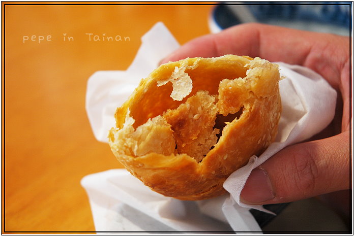 ●甜燒餅,12元。不知這燒餅是否為阿卿自製,但燒餅好吃是無庸置疑,口感酥脆,一口咬下,甜蜜的白糖內饀加上烤得酥的外皮,是搭配不會太甜的杏仁茶的好佐伴,後來,還買了幾個帶回給家人品嚐呢…^^