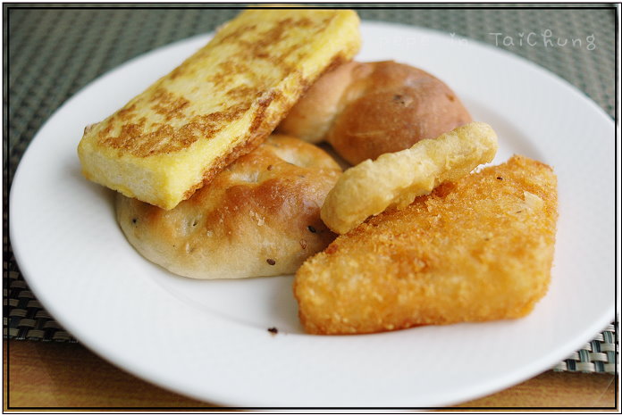 我一口氣吃了四種麵包加上雞塊。