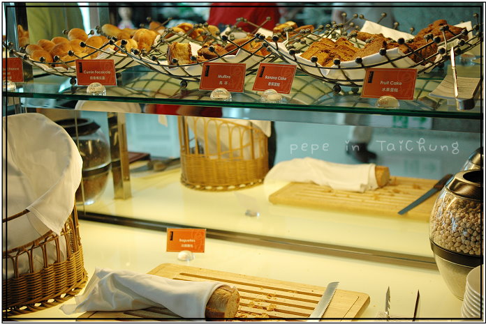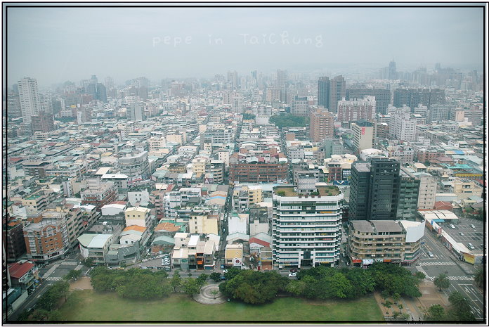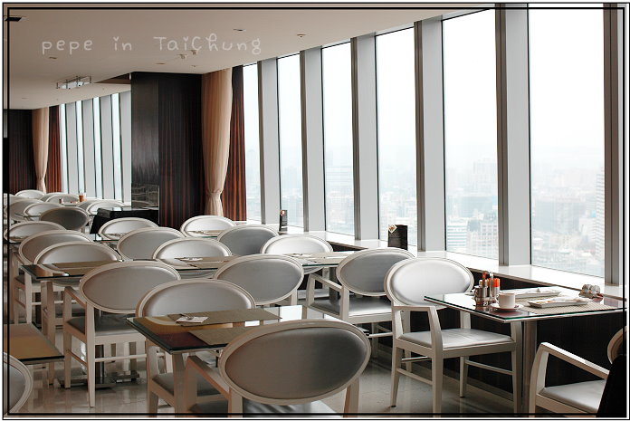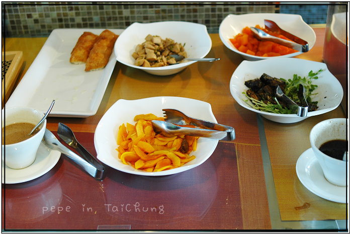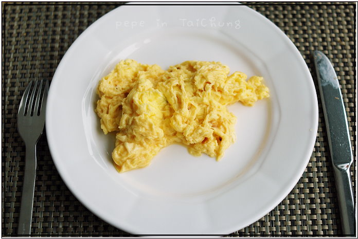這時肚子便已有飽足感了,起身再去巡視是否有想吃的食物時,發現廚師料理區排了長隊伍,仔細觀察,原來是料理蛋的地方,可以請廚師煎荷包蛋,也可以依照個人食蛋的習慣不同而特製,我們請廚師做了一份炒蛋一起吃,新鮮現打現做的滑嫩嫩炒蛋果然很好吃,吃完早餐,可以看看窗外的風景,我們運氣很好,坐到了靠窗的位子,可以遠眺台中市區,也可以看見一幢幢大小高矮、顏色各異的房子,視野很好,拌著美景一起吃,心情果真很好..^^
