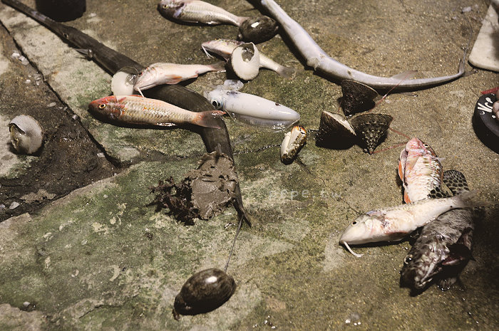 因坐著小船,擔心帶相機容易進水,也無潛水外裝,沒帶相機一同出去,回到民宿時再拍漁獲。