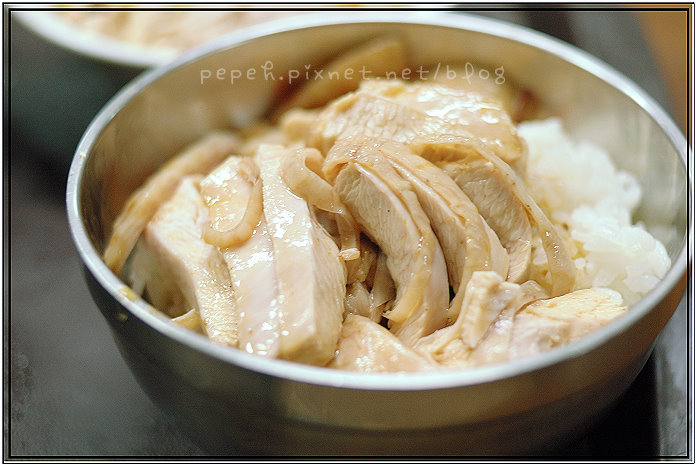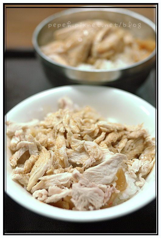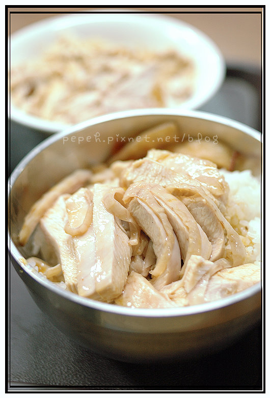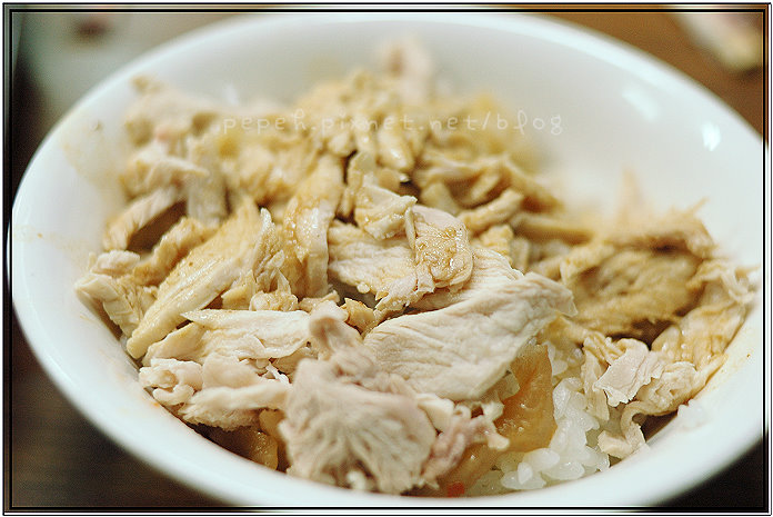 火雞肉片飯,大碗55元,小碗45元,我們點的是大碗。雞肉片有兩種選擇,可選”瘦肉”或是”半肥”,我們選”半肥”。