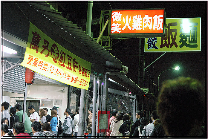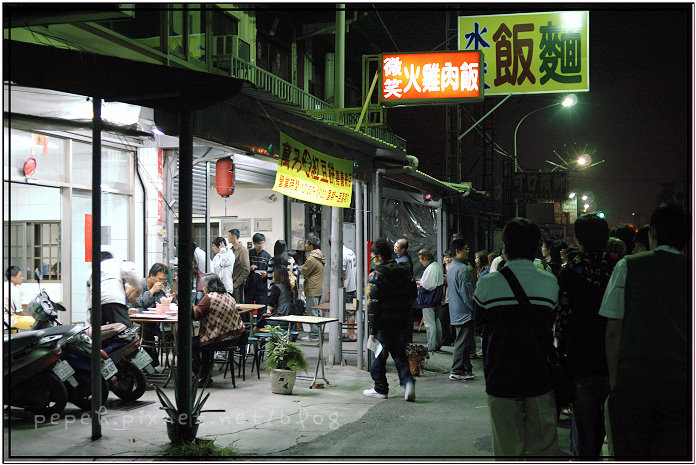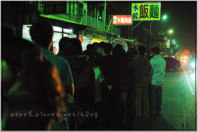 找停車位時,人龍綿延到十字路口,那景象還是頭一遭看到,排得好長,不禁萌生退回之意,也好奇”這些人到底幾點來排隊的呀? 難得爬起床,不吃一碗火雞肉飯再走似乎有些可惜,討厭排隊的我們還是排隊了,微笑火雞肉飯在北回歸線以北,幸虧穿了外套和長褲,不然凌晨的涼意還真有點難受,跟鹽水的雞蛋糕一樣,排了快一個小時才吃到火雞肉飯,w說,5,6年前來吃時沒有這麼誇張,倒是會看到不少”兄弟”來吃,現在來吃的大部份是大學生,火雞肉飯是好吃,但如果要等那麼久,就不會再特地來吃了,熬夜吃消夜還真是痛苦,害我連續兩天都得提早睡才能補回好精神…XD